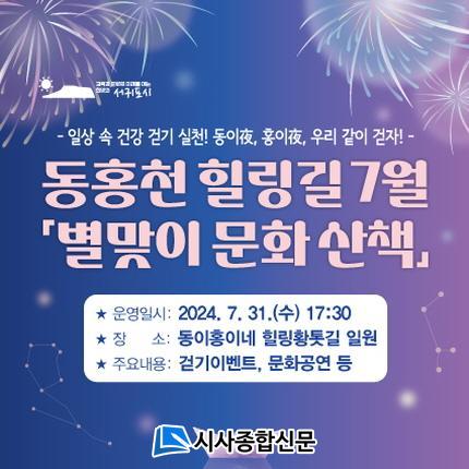 À̹ø 7¿ù º°ºû ¹®È »êÃ¥Àº µ¿È«¹Î¼Ó¹®Èº¸ÀüȸÀÇ ½Å¸í³ª´Â dz¹° °ø¿¬À» ½ÃÀÛÀ¸·Î¡®ÃÖ¿µ±Ô¡¯,¡®È«Á¶¹êµå¡¯ÀÇ ¹®È°ø¿¬, ¾î¸°À̵éÀ» À§ÇÑ ºñ´°¹æ¿ï üÇè µî ÆòÀÏ Àú³á ½Ã°£ ³²³à³ë¼Ò ¸ðµÎ°¡ Áñ±æ ¼ö ÀÖ´Â ÇÁ·Î±×·¥ÀÌ °èȹµÇ¾î ÀÖÀ¸¸ç, ÀÏ»ó ¼Ó °È±â »ýȰ ½ÇõÀ» À§ÇÑ ÇöÀå À̺¥Æ®µµ ÇÔ²² ÁøÇàµÈ´Ù.