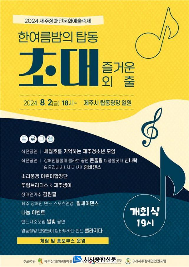 À̳¯ ÃàÁ¦¿¡´Â ¡®¼¼¿ùÈ£¸¦ ±â¾ïÇÏ´Â Á¦ÁÖû¼Ò³â ¸ðÀÓ¡¯°ú Àå¾ÖÀÎdz¹°ÆÐ ¡®Å«¿ï¸²¡¯, dz¹°±ÂÆÐ ¡®½Å³ª¶ô¡¯, Àå¾ÖÀÎ ´í½º¸ðÀÓ ¡®À¸¶óÂ÷Â÷! Â÷!Â÷!Â÷!¡¯ÀÇ ÄÝ¶óº¸ °ø¿¬À» ½ÃÀÛÀ¸·Î ¡®¼Ò¸®Ç³°æ ¾î¸°ÀÌ ÇÕâ´Ü¡¯, ¡®¶Ñ·³ºê¶ó´õ½º&Á¦ÁÖ»ýÀÌ¡¯ÀÇ °ø¿¬°ú Àå¾ÖÀΰ¡¼ö ¡®±è¿øÇÊ¡¯ÀÇ ³ë·¡, ¡®Á¦ÁÖ Àå¾ÖÀÎ ´í½º ½ºÆ÷Ã÷ ¿¬¸Í¡¯ÀÇ ÈÙü¾î´í½º, ¡®º°ºû¹êµå¡¯, ¡®¿µµîÇÒ¸Á ÀÎÇü³îÀÌ¡¯¿Í ¹ÙÅõÄ«´Ù ¹êµå ¡®»¬¶óÁö´Ù¡¯ÀÇ °ø¿¬ÀÌ ´Ùä·Ó°Ô ÆîÃÄÁø´Ù. ƯÈ÷ ´Ù¾çÇÑ À帣¿Í ´Ù¾çÇÑ ÇüÅÂÀÇ °ø¿¬À» ÇÑÀÚ¸®¿¡¼ Á¢ÇÒ¼ö ÀÖ¾î žµ¿±¤ÀåÀ» ãÀº ¸¹Àº »ç¶÷µé¿¡°Ô Áñ°Å¿òÀ» ¼±»çÇÒ ¿¹Á¤ÀÌ´Ù.