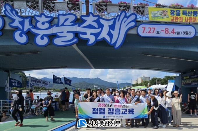 [½Ã»çÁ¾ÇսŹ® = ¿À½ÂÅà ±âÀÚ] ÀåÈï±³À°Áö¿øÃ»(±³À°Àå Á¤¼ø¹Ì)Àº 2024. 8. 1.(¸ñ) ŽÁø°º¯À» ÁÖ¹«´ë·Î ¿¸®°í ÀÖ´Â Á¦17ȸ Á¤³²Áø ÀåÈï ¹°ÃàÁ¦¿¡¼ ÃàÁ¦ °ü±¤°´ ¹× Áö¿ª¹ÎÀ» ´ë»óÀ¸·Î ¡¸°øÁ¤ÇÏ°í ½Å·Ú¹Þ´Â Ã»·Å ÀåÈï±³À°¡¹À» È«º¸Çϴ û·Å Ä·ÆäÀΠȰµ¿À» ÁøÇàÇß´Ù.