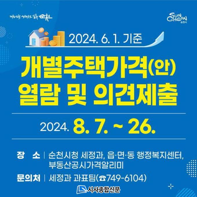 [½Ã»çÁ¾ÇսŹ® = Àå¹Î±Ô ±âÀÚ] ¼øÃµ½Ã(½ÃÀå ³ë°ü±Ô)´Â ¿ÃÇØ 6¿ù 1ÀÏ ±âÁØÀ¸·Î »êÁ¤․°ËÁõÇÑ °³º°ÁÖÅð¡°ÝÀ» ¿À´Â 8¿ù 26ÀϱîÁö ¼ÒÀ¯ÀÚ¿Í ±× ¹ÛÀÇ ÀÌÇØ°ü°èÀο¡°Ô ¿¶÷Çϰí ÀǰßÀ» µè´Â´Ù°í ¹àÇû´Ù.