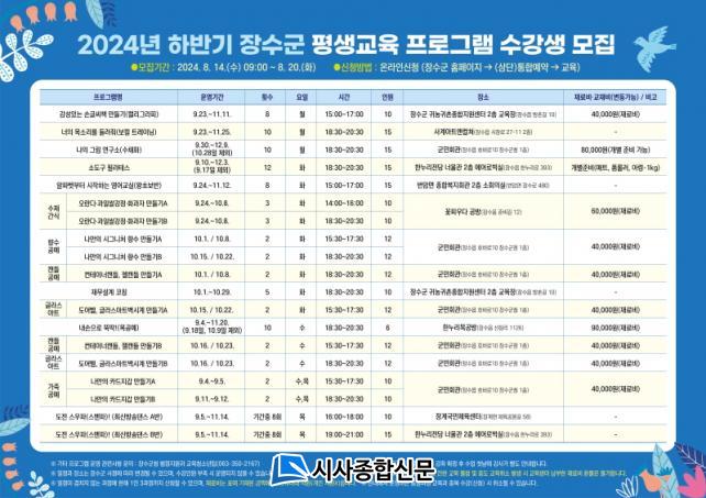 | Àå¼ö±º, 2024³â ÇÏ¹Ý±â Æò»ý±³À° ÇÁ·Î±×·¥ ¼ö°»ý ¼±Âø¼ø ¸ðÁý |