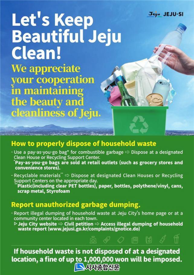 ÀÌ¿¡, ¿Ü±¹ÀÎ °ü±¤°´µéÀÌ Á¦ÁÖÀÇ »ýȰ ¾²·¹±â ¹èÃâ ¹æ¹ýÀ» ÀÌÇØÇÏ°í ½ÇõÇÒ ¼ö ÀÖµµ·Ï Áß±¹¾î/¿µ¾î µîÀÇ ¿Ü±¹¾î ¾È³»¹®À» Á¦ÀÛÇØ ¿Ü±¹ÀεéÀÌ ¸¹ÀÌ ¹æ¹®ÇÏ´Â °÷(»ó°¡, ¸é¼¼Á¡ µî)¿¡ ºñÄ¡¡¤¹èºÎÇϰí, ÀϺΠ¹«´ÜÅõ±â°¡ ½É°¢ÇÑ °÷¿¡´Â ÀηÂÀ» ¹èÄ¡ÇÏ¿© ±ú²ýÇÑ È¯°æÀÌ À¯ÁöµÇµµ·Ï ÃßÁøÇÒ ¿¹Á¤ÀÌ´Ù.