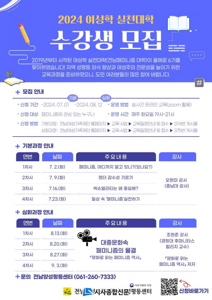 [½Ã»çÁ¾ÇսŹ® = ¿À½ÂÅà ±âÀÚ] Àü³²¿©¼º°¡Á·Àç´ÜÀº ¿À´Â 9¿ù 3ÀϱîÁö 4ÁÖ°£ ¸ÅÁÖ È¿äÀÏ ¿ÀÈÄ 7½Ã Àü³²Áö¿ª ¼ºÆòµî Àü¹® Ȱµ¿°¡ ¹ß±¼¡¤¿ª·® °È¸¦ À§ÇÑ ¿©¼ºÇнÇõ´ëÇÐ ½ÉÈ °úÁ¤À» ¿î¿µÇÑ´Ù°í ¹àÇû´Ù.