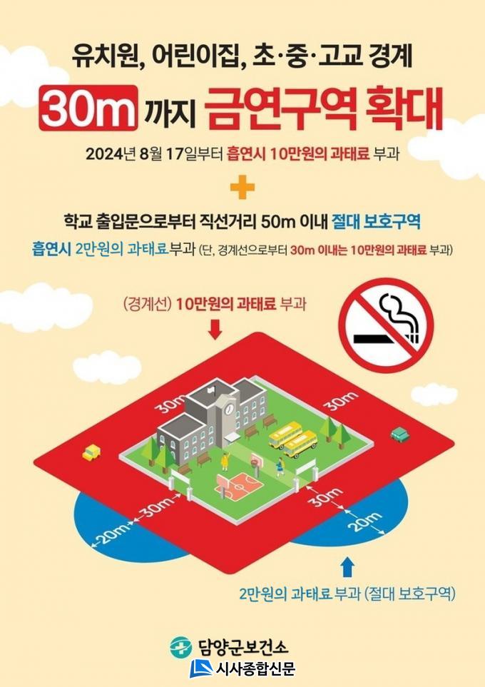 [½Ã»çÁ¾ÇսŹ® = ¿À½ÂÅà ±âÀÚ] ´ã¾ç±º(±º¼ö À̺´³ë)Àº ¾î¸°ÀÌ¡¤Ã»¼Ò³âÀÇ ¾î¸°ÀÌÁý¡¤À¯Ä¡¿ø¡¤Çб³ µîÇϱ·±æ ´ã¹è ¾ø´Â ÄèÀûÇÑ ±Ý¿¬ ȯ°æ Á¶¼ºÀ» À§ÇØ ¿À´Â 8¿ù 17ÀϺÎÅÍ ¾î¸°ÀÌÁý¡¤À¯Ä¡¿ø¡¤ÃÊÁß°íµîÇб³ ½Ã¼³ °æ°è 30m À̳»·Î ±Ý¿¬ ±¸¿ªÀ» È®´ë ¹× ½Å¼³ÇÑ´Ù.