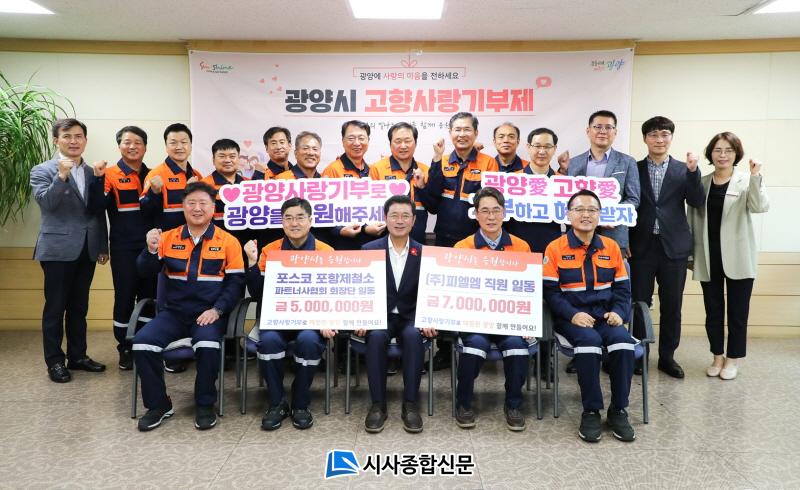 ±âºÎ±Ý Àü´ÞÀ» À§ÇØ ±èÀç¿ Çùȸ ȸÀå°ú ±¸Çå·Ï¡¤±Ç¿µÃ¶¡¤±èµµ±¤ ºÎȸÀå, ¿ì±âÅà °¨»ç, ¿©¼ö¹Î Æ÷Ç×Á¦Ã¶¼Ò Çù·Â¼ÒÅë¼½¼Ç ¸®´õ, ÀÌÈ£¿ì ¢ßÇÇ¿¤¿¥ ´ëÇ¥, Á¶¿µÃ¶ ÀÌ»ç, ±è°æ¿í ³ë»çÇùÀÇȸ ±Ù·ÎÀÚ´ëÇ¥ ¹× Æ÷Ç×½Ãû °ü°èÀÚ ÀÏ¿øÀÌ ±¤¾ç½Ã¸¦ ¹æ¹®Çß´Ù. ¾Æ¿ï·¯ Á¤»ó°æ ±¤¾çÁ¦Ã¶¼Ò ÇàÁ¤ºÎ¼ÒÀåÀÌ ¶æ±íÀº Çà»ç¸¦ ÃàÇÏÇϱâ À§ÇØ Àü´Þ½Ä¿¡ Âü¼®ÇØ ÀÚ¸®¸¦ ºû³Â´Ù.