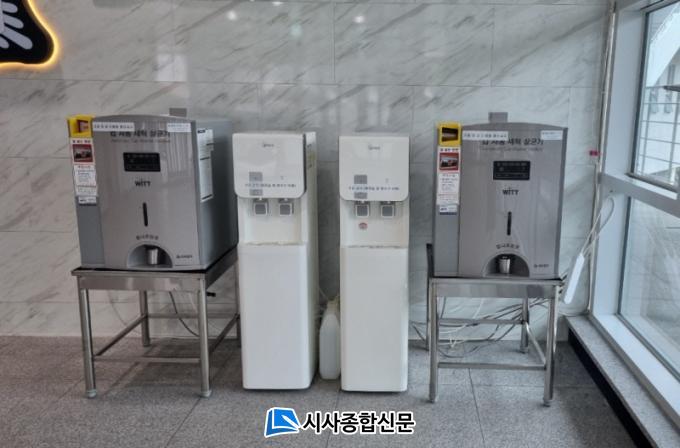±¤Áֽô ½Ãû ÇູȸÀÇ½Ç ¾Õ µî ÃÑ 3´ë¿Í ¿ª»ç¹Î¼Ó¹Ú¹°°ü¡¤¸¶ÇÑÀ¯ÀûüÇè°ü 1Ãþ¿¡ °¢ 1´ëÀÇ ÄÅ ³»ÀåÇü ¼¼Ã´±â¸¦ ¼³Ä¡Çß´Ù. ½Ãû°ú ¹Ú¹°°üÀ» ¹æ¹®ÇÏ´Â ½Ã¹Îµé¿¡°Ô ÀÏȸ¿ë Á¾À̰í±òÄÅ ´ë½Å ´Ùȸ¿ë ÄÅÀ» Á¦°øÇØ ÀÏȸ¿ëǰ ¹ß»ý·®À» ÁÙÀÌ°í ´Ùȸ¿ë±â »ç¿ëÀ» À¯µµÇÒ °èȹÀÌ´Ù.
