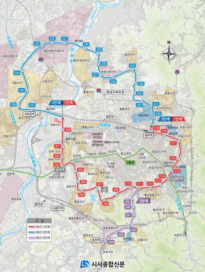 ¡®µµ½Ãöµµ 2È£¼± 2´Ü°è¡¯´Â ±¤ÁÖ¿ª¿¡¼ Àü³²´ëÇб³¸¦ °ÅÃÄ Àϰ÷´Ü¡¤¼ö¿Ï¡¤¿î³²Áö±¸ µî ºÏºÎÁö¿ªÀ» ¿¬°áÇÏ´Â 20.046§° ±¸°£¿¡ 18°³ Á¤°ÅÀåÀ» °Ç¼³ÇÏ´Â ´ë±Ô¸ð ÇÁ·ÎÁ§Æ®ÀÌ´Ù. 1´Ü°è¿Í ¿¬°èÇØ ±âÁ¸ µµ½É°ú ½Åµµ½Ã °£ ±³Åë È¥ÀâÀ» ÇØ¼ÒÇϰí, µµ½Ãöµµ Áß½ÉÀÇ ´ëÁß±³Åëü°è¸¦ ±¸ÃàÇÔÀ¸·Î½á ±¤ÁÖÁö¿ªÀÇ ±ÕÇü ¹ßÀü°ú µµ½Ã°³¹ßÀ» ÃËÁøÇÒ °ÍÀ¸·Î ±â´ëµÈ´Ù.