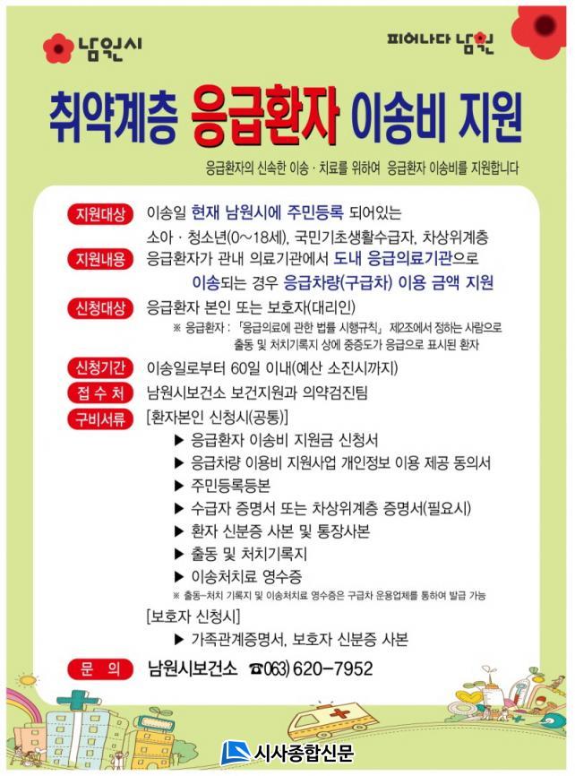 [½Ã»çÁ¾ÇսŹ® = ¿À½ÂÅà ±âÀÚ] ³²¿ø½Ã´Â ½Ã¹ÎÀÇ ¾ÈÀüÀ» µµ¸ðÇϱâ À§ÇØ ¿ÃÇØºÎÅÍ ¡®Ãë¾à°èÃþ ÀÀ±ÞȯÀÚ À̼ۺñ¡¯¸¦ Áö¿øÇÑ´Ù°í ¹àÇû´Ù.