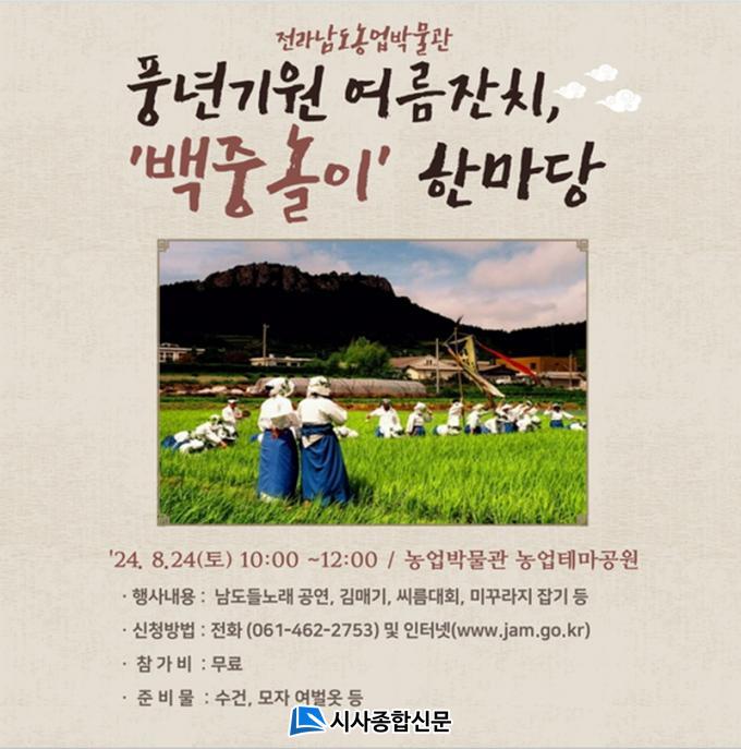 ±¹°¡¹«Çü¹®ÈÀ¯»êÀ¸·Î ÁöÁ¤µÈ ¡®³²µµµé³ë·¡¡¯ º¸Á¸È¸ °ø¿¬À» ½ÃÀÛÀ¸·Î, ±è¸Å±â ÀçÇö, ¾¾¸§´ëȸ, ¹Ì²Ù¶óÁö Àâ±â µî ÀüÅë ³ó°æÃ¼ÇèÀÌ ÆîÃÄÁú ¿¹Á¤ÀÌ´Ù.