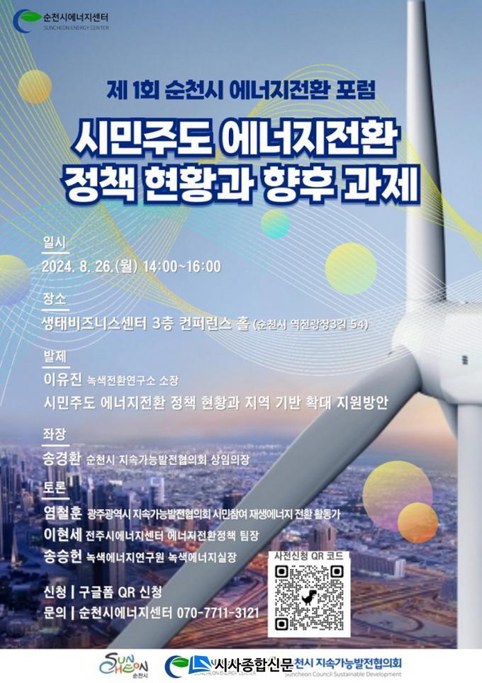 [½Ã»çÁ¾ÇսŹ® = Àå¹Î±Ô ±âÀÚ] ¼øÃµ½Ã ¿¡³ÊÁö¼¾ÅÍ(¼¾ÅÍÀå ¾È»ï¿µ)´Â ¼øÃµ½Ã Áö¼Ó°¡´É¹ßÀüÇùÀÇȸ(»óÀÓÀÇÀå ¼Û°æÈ¯)¿Í ÇÔ²² ¿À´Â 26ÀÏ ¿ÀÈÄ 2½Ã ¼øÃµ½Ã »ýźñÁî´Ï½º¼¾ÅÍ ÄÁÆÛ·±½º Ȧ¿¡¼ ¡®½Ã¹ÎÁÖµµ ¿¡³ÊÁöÀüȯ Á¤Ã¥ ÇöȲ°ú ÇâÈÄ °úÁ¦¡¯¶ó´Â ÁÖÁ¦·Î ¼øÃµ½Ã ¿¡³ÊÁöÀüȯ Æ÷·³À» °³ÃÖÇÑ´Ù.