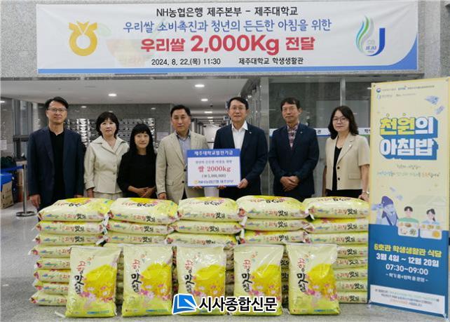 [½Ã»çÁ¾ÇսŹ® = °í¼º¹Î ±âÀÚ] NH³óÇùÀºÇà Á¦ÁÖº»ºÎ(º»ºÎÀå °í¿ìÀÏ)´Â 22ÀÏ Á¦ÁÖ´ëÇб³(ÃÑÀå ±èÀÏȯ)¸¦ ¹æ¹®, ½Ò ¼ÒºñÃËÁøÀ» À§ÇÑ ¡®¾ÆÄ§¹ä¸Ô±â µ¿Âü¿îµ¿¡¯ ¾÷¹«Çù¾àÀ» ü°áÇϰí, ¿ì¸®½Ò 2000kgÀ» Àü´ÞÇß´Ù.