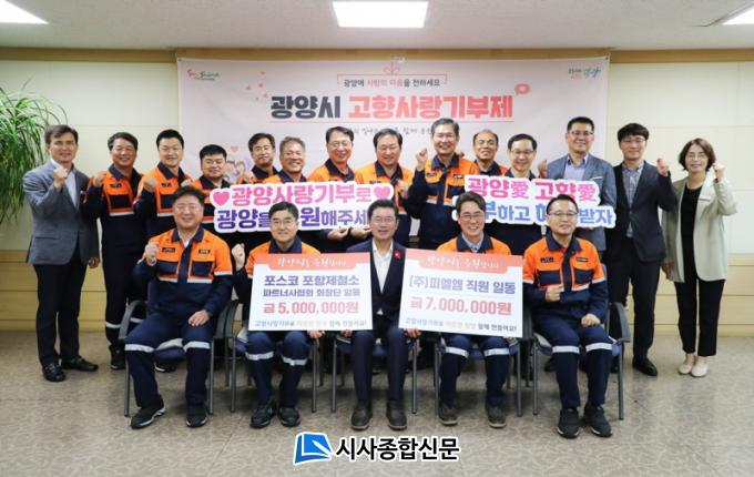 Áö³´Þ 27ÀÏ, ±¤¾çÁ¦Ã¶¼Ò ¡®Å¬¸°¿À¼ÇºÀ»ç´Ü¡¯°ú Æ÷Ç×Á¦Ã¶¼Ò ¡®Á¶°æºÀ»ç´Ü¡¯ÀÌ °¢°¢ °íÇâ»ç¶û±âºÎÁ¦ Âü¿© Çà»ç¸¦ ½Ç½ÃÇÏ¸ç ¾ç Á¦Ã¶¼Ò Àç´ÉºÀ»ç´Ü °£ ù »óÈ£±âºÎÀÇ ½ºÅ¸Æ®¸¦ ²÷¾ú´Ù. Áö³ 12ÀÏ¿¡´Â ±¤¾çÁ¦Ã¶¼Ò ÆÄÆ®³Ê»çÇùȸ ȸÀå´ÜÀÌ Æ÷Ç×½ÃûÀ» ¹æ¹®ÇØ °íÇâ»ç¶û±âºÎ±Ý Àü´Þ½ÄÀ» °³ÃÖÇÑ µ¥ À̾î 19ÀÏ, Æ÷Ç×Á¦Ã¶¼Ò ÆÄÆ®³Ê»çÇùȸ ȸÀå´ÜÀÌ ±¤¾ç½ÃûÀ» ¹æ¹®ÇØ °íÇâ»ç¶û±âºÎ±ÝÀ» Àü´ÞÇÏ´Â µî ÆÄÆ®³Ê»çµµ °íÇâ»ç¶û±âºÎÁ¦ ±³Â÷ ±âºÎ¿¡ µ¿ÂüÇß´Ù.