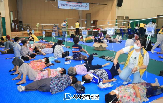 À̹ø ÀÇ·áºÀ»ç¿¡¼´Â ¼øÃµÀÇ·á¿ø ÀÇ·áÁø°ú ±¸·Ê±ºº¸°ÇÀÇ·á¿ø Á÷¿ø, ÅäÁö¸é»ç¹«¼Ò 20¿© ¸íÀÌ Âü¿©ÇØ ÅäÁö¸é ÁֹΠ140¸í¿¡°Ô ±âÃʰËÁø, Àü¹®ÀÇ Áø·á, ¿µ¾çÁ¦ Åõ¿©, ¾à ó¹æ µî ´Ù¾çÇÑ ÀǷἺñ½º¸¦ Á¦°øÇß´Ù.