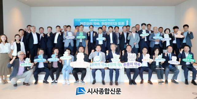 À̹ø ȸÀÇ´Â Á¦ÁÖ°ü±¤ ´ëÇõ½ÅÀ» À§ÇØ ¡®Á¦ÁÖ¿ÍÀÇ ¾à¼Ó¡¯À» ¼±¾ðÇÏ°í º¯È¿¡ ¼Óµµ¸¦ ³»°í ÀÖ´Â Á¦ÁÖµµ°¡ °ü±¤ ÇöÀå¿¡¼ Çõ½ÅÀÇ Àǹ̸¦ µÇ»õ±â°í, °ü±¤¾÷°è¿ÍÀÇ ¼ÒÅëÀ» °ÈÇϰڴٴ ÀÇÁö¸¦ ´ã¾Æ ³ë ÆäÀÌÆÛ(No-Paper) ÇöÀå ȸÀÇ·Î ÁøÇàµÆ´Ù.