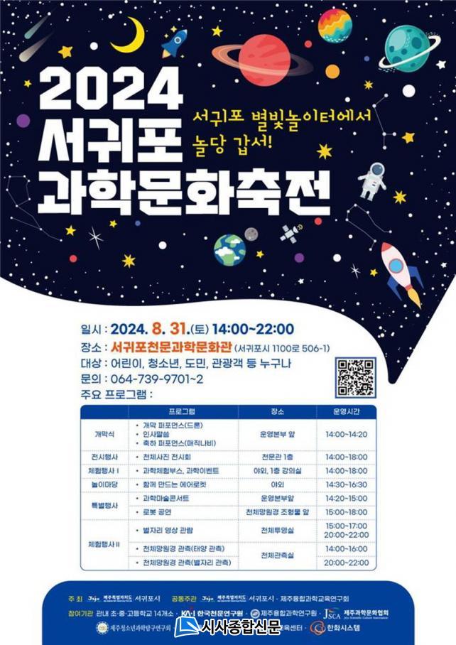 2024 ¼±ÍÆ÷°úÇй®ÈÃàÀüÀº ¾î¸°ÀÌ, û¼Ò³â, µµ¹Î, °ü±¤°´ µî ´©±¸³ª ¿¹¾à ¾øÀÌ ¹«·á·Î Âü°¡ÇÒ ¼ö ÀÖÀ¸¸ç, ¼±ÍÆ÷õ¹®°úÇй®È°ü ȨÆäÀÌÁö(https://culture.seogwipo.go.kr/astronomy)³ª ÀüÈ(064-739-9701~2)·Î ÀÚ¼¼ÇÑ ³»¿ëÀ» È®ÀÎÇÒ ¼ö ÀÖ´Ù.