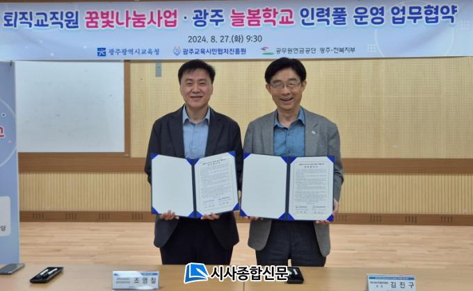 [½Ã»çÁ¾ÇսŹ® = ¿À½ÂÅà ±âÀÚ] °ø¹«¿ø¿¬±Ý°ø´Ü(ÀÌ»çÀå ±èµ¿±Ø)±¤ÁÖ¡¤ÀüºÏÁöºÎ¿Í ±¤ÁÖ±³À°½Ã¹ÎÇùÄ¡ÁøÈï¿ø(¿øÀå ±èÁø±¸)Àº 27ÀÏ ±¤ÁÖ±³À°½Ã¹ÎÇùÄ¡ÁøÈï¿ø ¼Ò°´ç¿¡¼ ´Ãº½Çб³ ¿î¿µ µî ±³À° ºÐ¾ßÀÇ »çȸ°øÇå Ȱµ¿ Ȱ¼ºÈ¸¦ À§ÇÑ ¾÷¹«Çù¾àÀ» ü°áÇß´Ù.