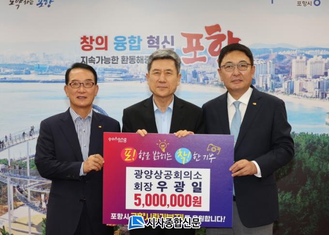 [½Ã»çÁ¾ÇսŹ® = Àå¹Î±Ô ±âÀÚ] ±¤¾ç»ó°øÈ¸ÀÇ¼Ò ¿ì±¤ÀÏ È¸ÀåÀÌ 8¿ù 28ÀÏ(¼ö) Æ÷Ç×½ÃûÀ» ¹æ¹®ÇØ °íÇâ»ç¶û±âºÎ±Ý °³ÀÎ ÃÖ°íÇѵµ¾× 500¸¸¿øÀ» ±âºÎÇÏ¿´´Ù.