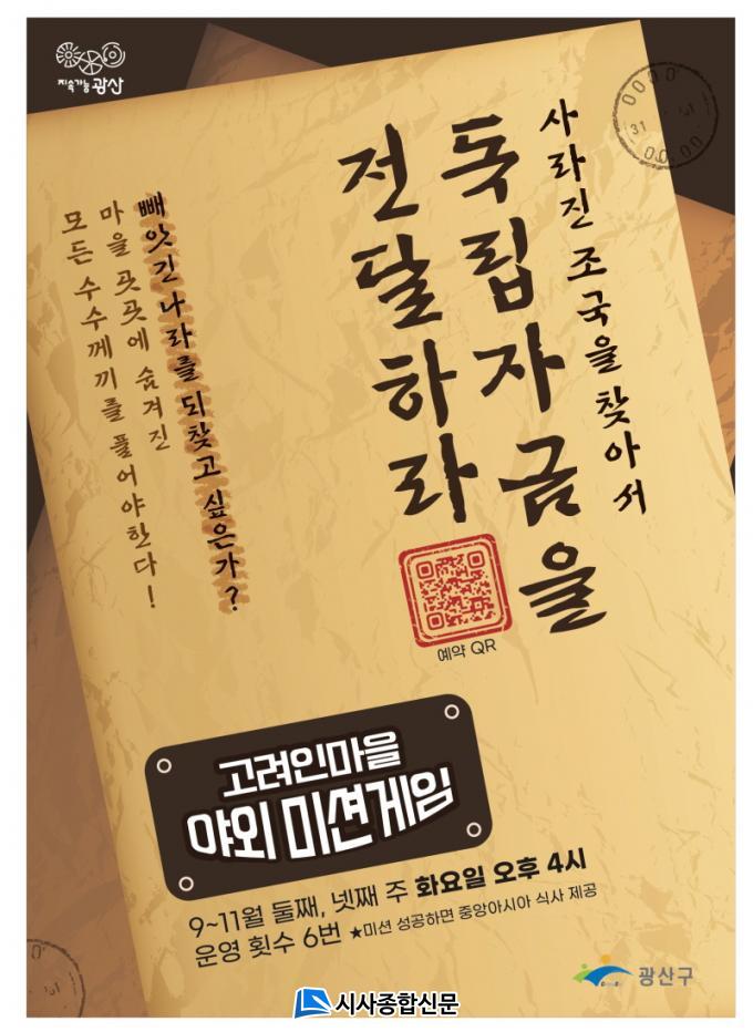 ¡®°í·ÁÀθ¶À» °ñ¸ñ¿©Ç࡯Àº ±¤»ê±¸°¡ Áö³ÇغÎÅÍ ÃßÁø ÁßÀÎ ¡®°í·ÁÀÎ ¿ª»ç¸¶À» 1¹øÁö °ü±¤ Ȱ¼ºÈ »ç¾÷¡¯ÀÇ Çϳª·Î, °í·ÁÀÎ °Á¦ÀÌÁÖ ¿ª»ç¿Í Ç×ÀÏ‧¹®È¿îµ¿ µî °í·ÁÀÎ ¿ª»ç‧¹®È¸¦ ¼ÒÀç·Î ±âȹÇÑ °í·ÁÀθ¶À» ޹æÇÁ·Î±×·¥ÀÌ´Ù.