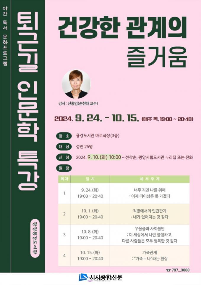 ÀÎÁö½É¸®ÇÐÀ» Àü°øÇÏ°í ¼øÃµ´ëÇб³ ÀÚÀ¯Àü°øÇкÎ/ ±³¾ç±³À°¿ø ºÎ±³¼ö/ ±³¾ç±³À°¿øÀåÀ¸·Î ÀçÁ÷ ÁßÀÎ ½ÅÈ«ÀÓ ±³¼ö°¡ Àΰ£°ü°è¿¡ ¾î·Á¿òÀ» ´À³¢´Â ½Ã¹ÎµéÀ» À§ÇØ Àΰ£°ü°èÀÇ º»Áú, Àΰ£°ü°èÀÇ ´Ù¾çÇÑ À¯Çü¿¡ ´ëÇÑ ÀÌÇØ, Àΰ£°ü°è¸¦ ¼º°øÀûÀ¸·Î °ü¸®ÇÏ´Â ¹æ¹ýÀ» °ÀÇÇÒ ¿¹Á¤ÀÌ´Ù.