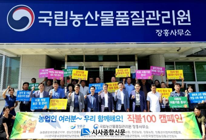 ³ó°ü¿ø ÀåÈï»ç¹«¼Ò¿¡¼ °³ÃÖµÈ Á÷ºÒ100 Ä·ÆäÀÎ Ãâ¹ü½Ä¿¡´Â ÀåÈﱺÀÌÀåÀÚÄ¡¿¬ÇÕȸ °¢ À¾․¸é ȸÀå, ÀåÈﱺ ³ó¾÷ÀδÜü, ÀåÈﱺ ³óÇùÁß¾Óȸ ¹× Áö¿ª³óÇùÁ¶ÇÕÀå µî ÃÑ 40¿© ¸íÀÌ Âü¼®Çß´Ù.