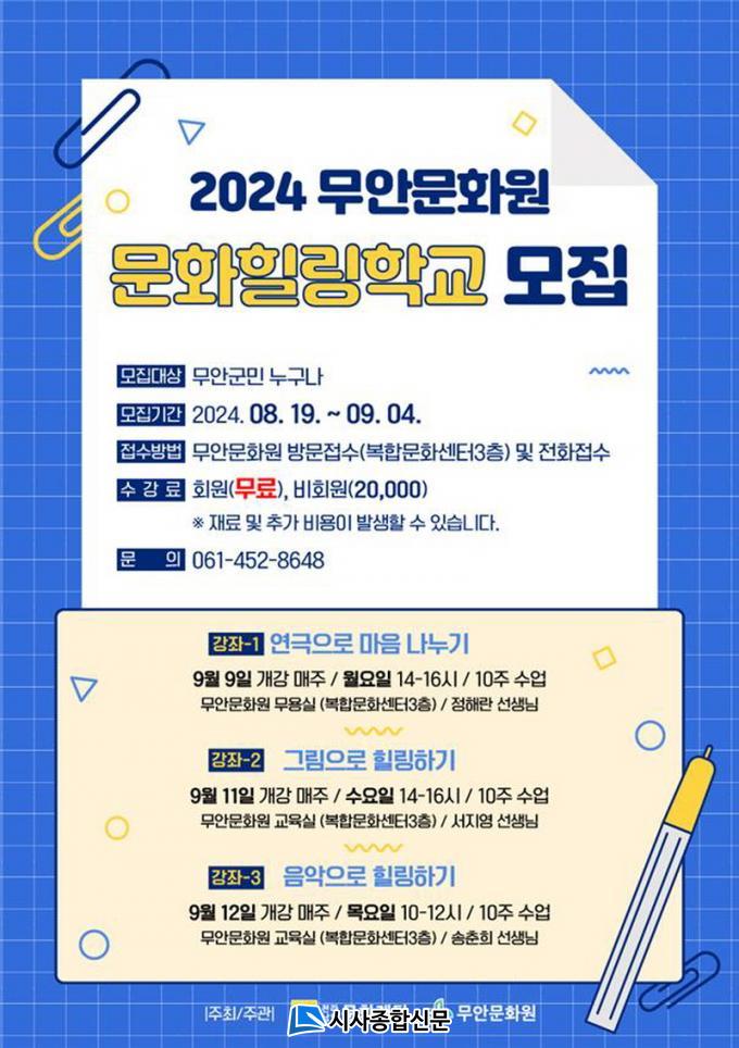 ¹«¾È¹®È¿ø ¹®È¿¹¼ú ±³À°ÇÁ·Î±×·¥ÀÎ <¹®ÈÈú¸µÇб³>´Â ÃÑ 45¸í Á¤µµ°¡ Âü¿©ÇÒ ¿¹Á¤À̸ç ÀÏ»ó¿¡ ÁöÄ£ Áֹε鿡°Ô ¸¶À½À̳ª °¨¼º µîÀ» Ä¡À¯ÇÒ ¼ö ÀÖ´Â ÇÁ·Î±×·¥À¸·Î ÁֹεéÀÇ ¹®È ÇâÀ¯·ÂÀ» Çâ»ó½ÃÄÑ ¹®È ¹«¾ÈÀÎÀ¸·Î¼ ±â´ë¸¦ ³ôÀÏ ¿¹Á¤ÀÌ´Ù.
