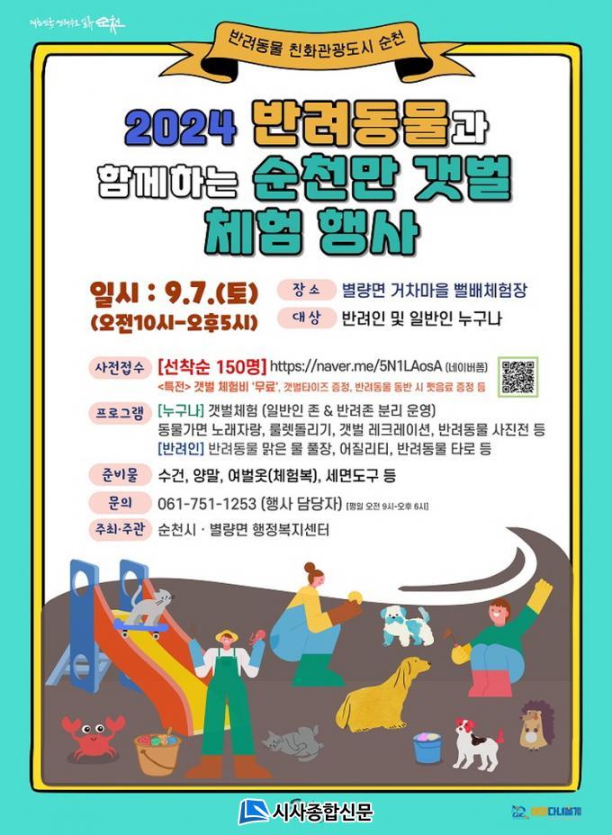 | ¼øÃµ½Ã, 2024 ¹Ý·Áµ¿¹°°ú ÇÔ²²ÇÏ´Â ¼øÃµ¸¸ °¹¹úüÇè Çà»ç °³ÃÖ Ãµ¿¬ÀÚ¿ø °¹¹ú¿¡¼ ¹Ý·Áµ¿¹°°ú ÇÔ²² Áñ°Ü¿ä |