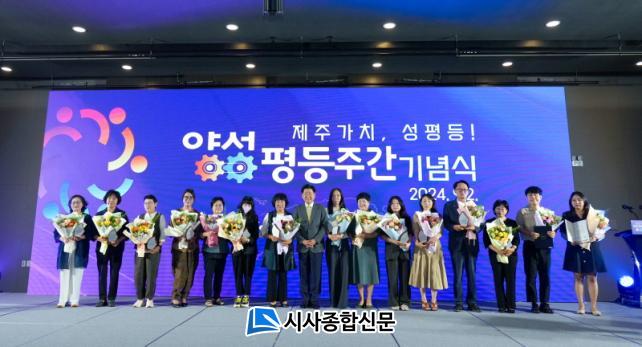 ¾ç¼ºÆòµî À¯°øÀÚ Ç¥Ã¢½Ä¿¡´Â Á¦ÁÖ»çȸÀÇ ¾ç¼ºÆòµî ¹®È È®»ê¿¡ ±â¿©ÇÑ 13¸í¿¡ ´ëÇØ µðµõµ¹ ǥâÆÐ°¡, 2¸íÀÇ À¯°ø °ø¹«¿ø¿¡°Ô ǥâÀåÀÌ ¼ö¿©µÆ´Ù. ÀÌÈÄ¿¡´Â Âü¼®ÀÚ ¸ðµÎ°¡ ¾ç¼ºÆòµî ¸®´õ·Î¼ ¾ç¼ºÆòµî ½Çõ¿¡ ¾ÕÀå¼°Ú´Ù´Â Àǹ̸¦ ´ã¾Æ ¼ºÆòµî ½Çõ ¼¸í ÆÛÆ÷¸Õ½º·Î ¸¶¹«¸®Çß´Ù.