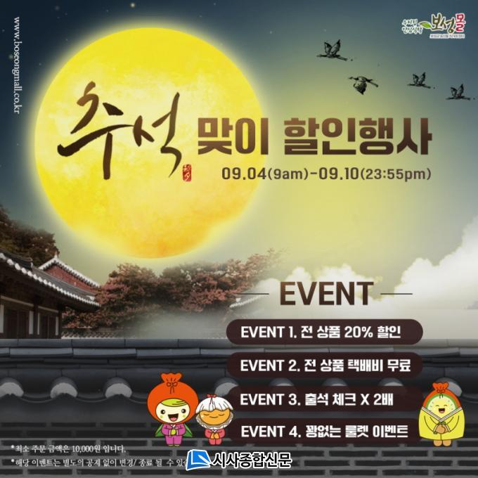 À̹ø Ưº° ÇÒÀÎÇà»ç´Â ¡®º¸¼º¸ô¡¯À» ÀÌ¿ëÇÏ´Â ¸ðµç °í°´À» ´ë»óÀ¸·Î Àü »óǰ 20% ÇÒÀÎ, Àü»óǰ ¹«·á¹è¼Û(¸¸ ¿ø ÀÌ»ó ±¸¸Å ½Ã), ·ê·¿ À̺¥Æ®(2õ~10¸¸ Æ÷ÀÎÆ® Àû¸³), Ãâ¼® üũ Àû¸³±Ý 2¹è À̺¥Æ®(±âÁ¸ 100¿ø) µî °©Áø³âÀ» ¸Â¾Æ °ªÁø ÇýÅÃÀ» ÁÖ´Â À̺¥Æ®°¡ ÁغñµÅ ÀÖ´Ù.