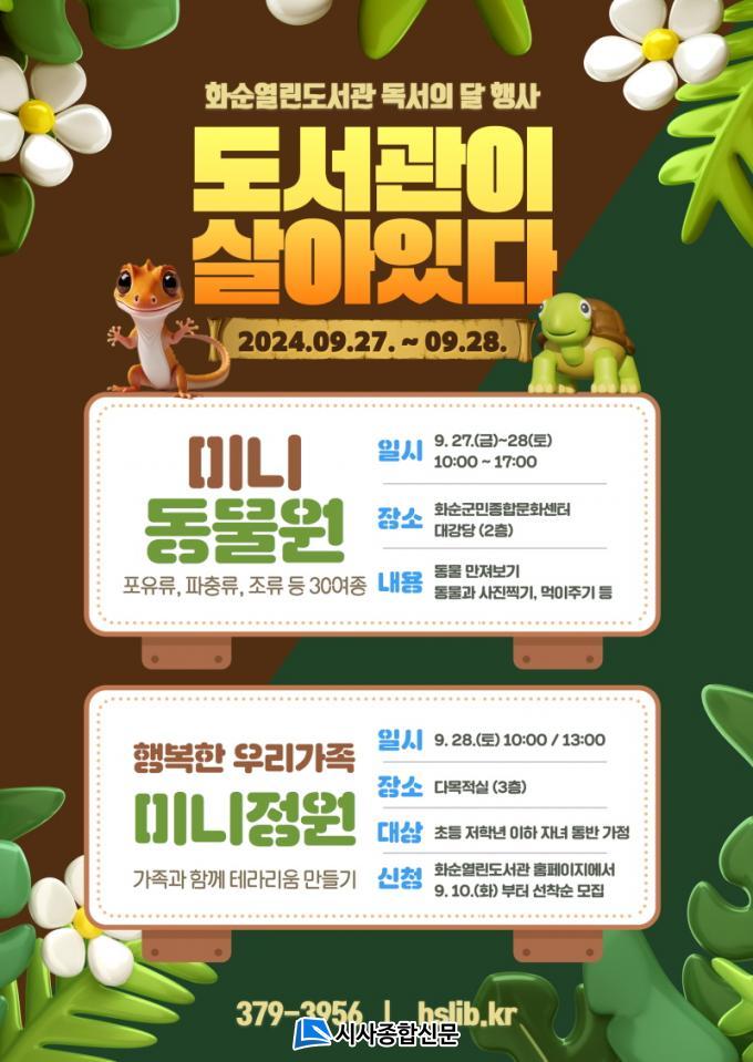 ¡°µµ¼°üÀÌ »ì¾ÆÀÖ´Ù¡±ÀÇ ¸ðµç Çà»ç Âü¿©´Â ¹«·áÀ̸ç, ¡®ÇູÇÑ ¿ì¸® °¡Á· ¹Ì´ÏÁ¤¿ø¡¯Àº ȼø¿¸°µµ¼°ü ȨÆäÀÌÁö(hslib.kr)¸¦ ÅëÇØ 9¿ù 10ÀÏ(È) ¿ÀÀü 9½ÃºÎÅÍ È¸Â÷º° 8°¡Á·À» ¼±Âø¼ø ¸ðÁýÇÑ´Ù.