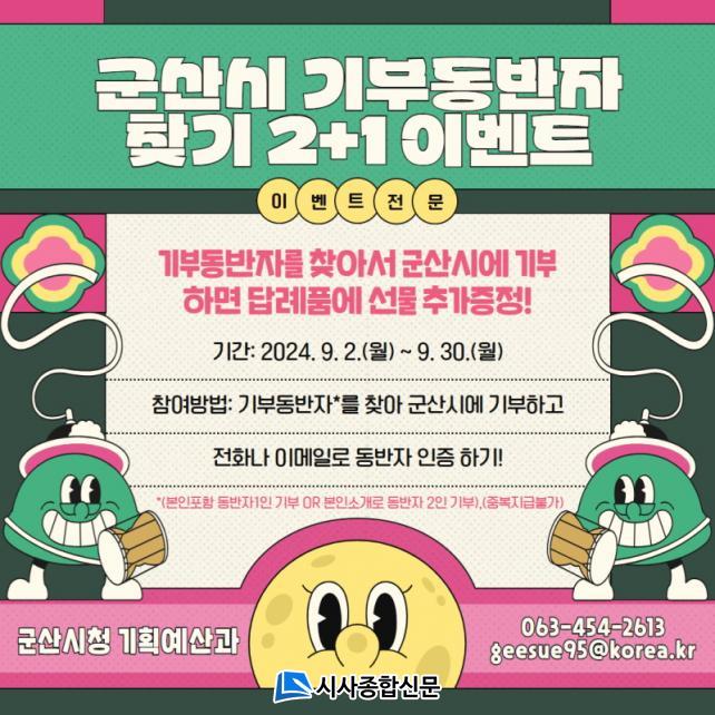 [½Ã»çÁ¾ÇսŹ® = ¿À½ÂÅà ±âÀÚ] ±º»ê½Ã°¡ 9¿ù ÇÑ ´Þ µ¿¾È ¡®°íÇâ»ç¶û±âºÎ µ¿¹ÝÀÚ Ã£±â 2+1¡¯ À̺¥Æ®¸¦ ¿¬´Ù. ¶ÇÇÑ 11~12ÀÏ¿¡´Â ½Ãû¿¡¼ ¡®±âºÎµ¿¹ÝÀÚ Ã£±â ÇöÀ塯 È«º¸µµ ÁøÇàÇÑ´Ù.