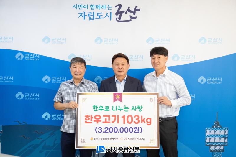 [½Ã»çÁ¾ÇսŹ® = ¿À½ÂÅà ±âÀÚ] (»ç)Àü±¹ÇÑ¿ìÇùȸ ±º»ê½ÃÁöºÎ(ÁöºÎÀå ÀÌ¿µÃ¶)Àº »çȸº¹Áö½Ã¼³¡¤´Üü µî ¾î·Á¿î ÀÌ¿ô¿¡ ÀüÇØ ´Þ¶ó¸ç, ÇÑ¿ìºÒ°í±â 103kg(320¸¸¿ø »ó´ç)¸¦ ±º»ê½Ã¿¡ ±âŹÇß´Ù.
