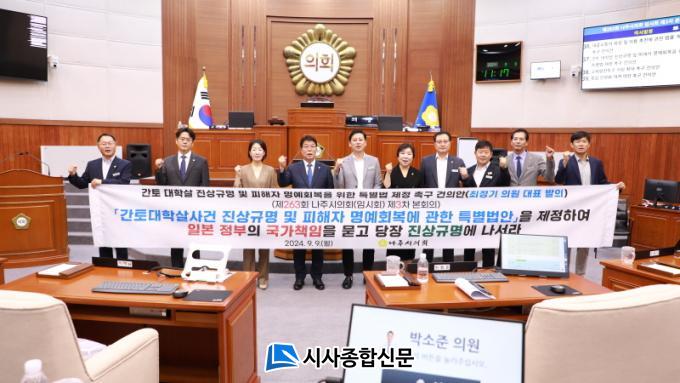 [½Ã»çÁ¾ÇսŹ® = ¿À½ÂÅà ±âÀÚ] ³ªÁÖ½ÃÀÇȸ(ÀÇÀå ÀÌÀç³²)´Â 9ÀÏ Á¦263ȸ ³ªÁÖ½ÃÀÇȸ(ÀÓ½Ãȸ) Á¦3Â÷ º»È¸ÀǸ¦ ¿°í ¡®¡¸°£Åä ´ëÇлì Áø»ó±Ô¸í ¹× ÇÇÇØÀÚ ¸í¿¹È¸º¹À» À§ÇÑ Æ¯º°¹ý¡¹Á¦Á¤ Ã˱¸ °ÇÀǾȡ¯À» Á¦¾ÈÇß´Ù.