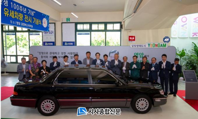 ¾ÕÀ¸·Î ¿µ¾Ï°ø¿µ¹ö½ºÅ͹̳ο¡ ¹æ¹®Çϸé, ±è Àü ´ëÅë·ÉÀÇ ¾ó±¼°ú ¡®¿µ¾Ï¿¡¼ ±è´ëÁß ´ëÅë·ÉÀ» ±â¾ïÇÏ´Ù¡¯´Â ¹®±¸°¡ ´ã±ä °¡·Îº® ¾Õ¿¡ Àü½ÃµÈ Àü½Ã À¯¼¼Â÷·®À» º¼ ¼ö ÀÖ´Ù.