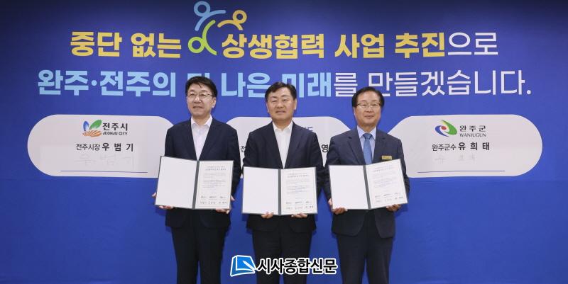 ¿ì¹ü±â ÀüÁÖ½ÃÀåÀº ¡°À̹ø ¿ÏÁÖ±º°ú ÀüÁÖ½ÃÀÇ Çù¾àÀ» ÅëÇØ ¾ç Áö¿ª ÁֹΠºÒÆí »çÇ× ÇØ°áÇϰí ÇÇÇØ¸¦ »çÀü¿¡ ¹æÁöÇÒ ¼ö ÀÖ´Ù´Â Á¡¿¡¼ ¾ç Áö¿ª °£ »ó»ýÇù·ÂÀÇ Çʿ伺¿¡ °ø°¨´ë¸¦ ´Ù½Ã Çѹø È®ÀÎÇÒ ¼ö ÀÖ¾ú´Ù¡±¸ç, ¡°Áö³ 3¿ù ÀÌÈÄ 6°³¿ù¸¸¿¡ ¿ÏÁÖ¡¤ÀüÁÖ »ó»ýÇù·Â »ç¾÷ Çù¾àÀ» ü°áÇÒ ¼ö ÀÖµµ·Ï ¾Ö½áÁֽбè°ü¿µ Áö»ç´Ô°ú À¯ÈñÅ ¿ÏÁÖ±º¼ö´Ô²² °¨»çÀÇ ¸»¾¸À» µå¸®¸ç ÇâÈÄ ÀüÁÖ‧¿ÏÁÖ ¾ç Áö¿ª ÁֹΠ¸ðµÎ¿¡ ÇýÅÃÀÌ µ¹¾Æ°¡°í Àå±âÀûÀÎ °üÁ¡¿¡¼ ÁøÁ¤ÇÑ »ó»ýÀ» ÀÌ·ê ¼ö ÀÖ´Â »ç¾÷µéÀ» ¹ß±¼‧ÃßÁø ÇÒ ¼ö ÀÖµµ·Ï Èû¾²°Ú´Ù¡±°í Çß´Ù