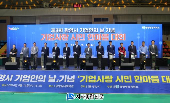 ¿ì±¤ÀÏ È¸ÀåÀº °³È¸»ç¸¦ ÅëÇØ ¡°¡®±¤¾ç½Ã ±â¾÷ÀÎÀÇ ³¯¡¯Àº ±¹°¡ °æÁ¦¹ßÀüÀ» À̲ø¾î¿Â ±â¾÷µµ½Ã ±¤¾çÀÇ ½ÃÀÛÀÌ¸ç ±¤¾çÀÇ ¼ºÀå°úÁ¤À» µ¹¾Æº¸°í, ¾ÕÀ¸·Î ³ª¾Æ°¥ ¹æÇâÀ» ¸ð»öÇÏ´Â Áß¿äÇÑ ±â³äÀÏÀÌ´Ù. ¿À´Ã¡¸±â¾÷»ç¶û ½Ã¹Î ÇѸ¶À½´ëȸ¡¹¸¦ ÅëÇØ ½Ã¹ÎÀº ±â¾÷À» ÀÀ¿øÇϰí, ±â¾÷Àº »çȸÀû Ã¥ÀÓ¿¡ ÃÖ¼±À» ´ÙÇϰڴٴ ´ÙÁüÀ¸·Î ½Ã¹Î°ú ±â¾÷ÀÌ ¼ÒÅëÇÏ¿© ÇѸ¶À½ÀÌ µÇ´Â ¼ÒÁßÇÑ ½Ã°£ÀÌ µÇ±æ ¹Ù¶õ´Ù.¡±°í ¸»Çß´Ù.
