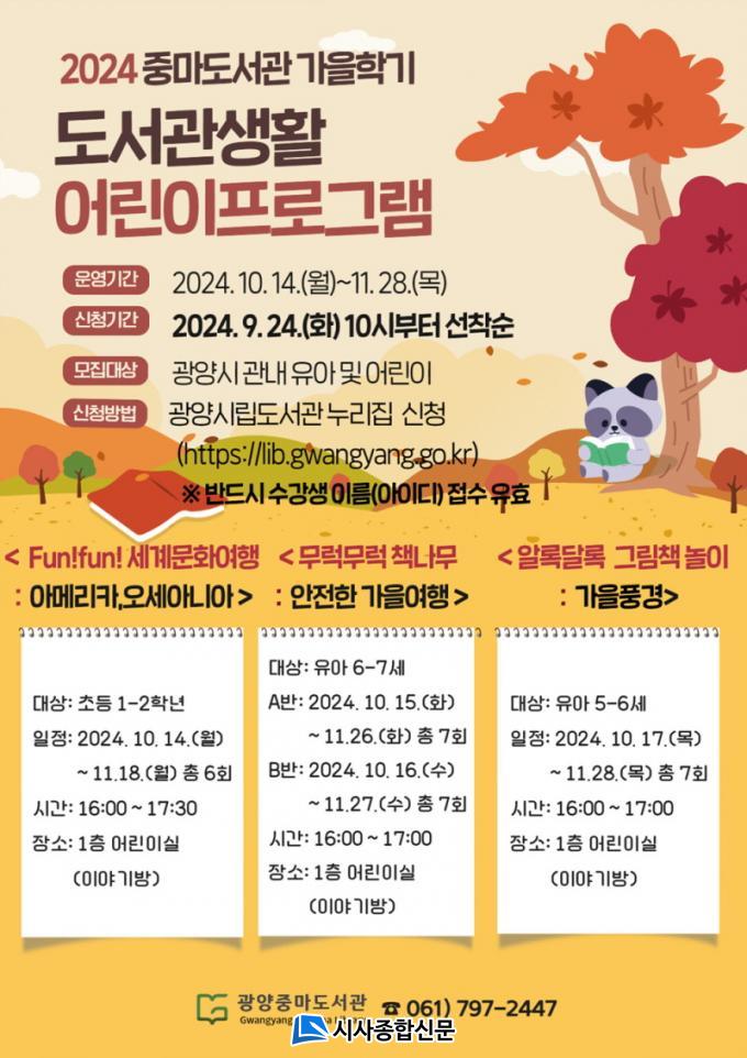 Á߸¶µµ¼°ü °¡À»Çб⠵µ¼°ü »ýȰ ¾î¸°ÀÌ ÇÁ·Î±×·¥ ¼ö° ½Åû°ú ±Ã±ÝÇÑ »çÇ×Àº ±¤¾ç½Ã¸³µµ¼°ü ´©¸®Áý(http://lib.gwangyang.go.kr)À» ¹æ¹®Çϰųª Á߸¶µµ¼°ü(¢Ï797- 2447)À¸·Î ¹®ÀÇÇϸé Ä£ÀýÇÏ°Ô ÀÚ¼¼ÇÑ ¾È³»¸¦ ¹ÞÀ» ¼ö ÀÖ´Ù.
