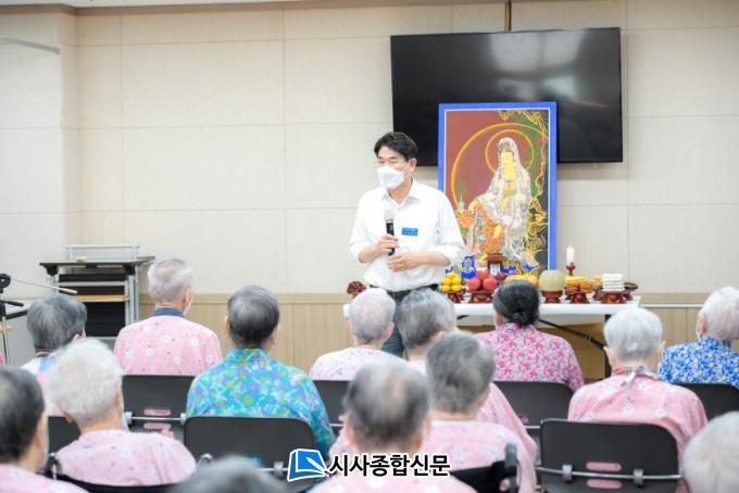 ³ë°ü±Ô ½ÃÀåÀº Áö³ 10ÀÏ ³ëÀοä¾ç½Ã¼³ÀÎ ¼Û±¤½Ç¹öÇϿ콺¸¦ ¹æ¹®ÇÏ¿© Ãß¼® À§¹®Ç°À» Àü´ÞÇÏ°í ½Ã¼³ °ü°èÀÚ¿Í »ýȰÀÚµéÀ» °Ý·ÁÇϰí À§·ÎÇß´Ù.