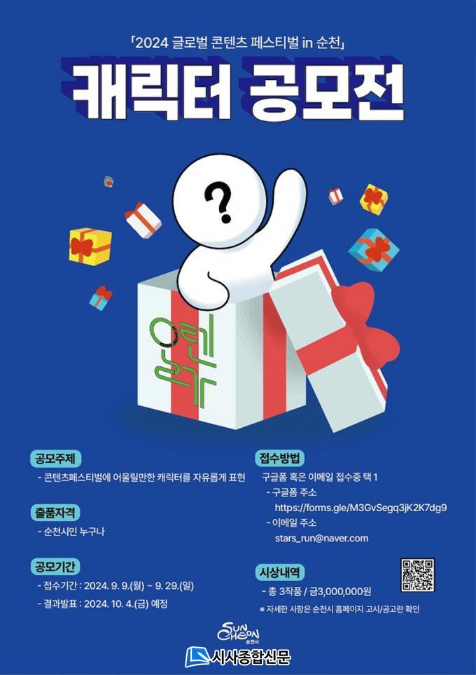 À̹ø °ø¸ðÀüÀº ÄÜÅÙÃ÷ Æä½ºÆ¼¹ú »çÀü ºÕ¾÷ÀÇ ÀÏȯÀ¸·Î ¼øÃµ ½Ã¹ÎµéÀÌ Á÷Á¢ ±×¸° ij¸¯Å͸¦ Áö¿ª ´ëÇÐ À¥Å÷¡¤¾Ö´Ï¸ÞÀÌ¼Ç ÇаúÀÇ ÇлýµéÀÌ º¸¿ÏÇϰí, ±â¾÷ÀÌ Âü¿©ÇÏ¿© »óǰÈÇÏ´Â Áö»êÇÐ Çù¾÷ ÇÁ·ÎÁ§Æ® Â÷¿ø¿¡ Àǹ̸¦ µÎ°í ÁøÇàµÈ´Ù.