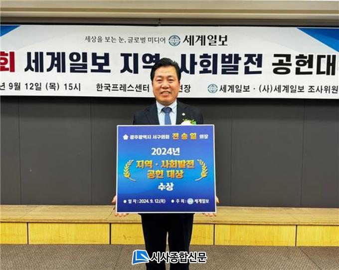 | ±¤ÁÖ ¼±¸ÀÇȸ Àü½ÂÀÏ ÀÇÀå, ¡®¼¼°èÀϺ¸ Áö¿ª․»çȸ¹ßÀü °øÇå´ë»ó¡¯ ¼ö»ó Àü±¹ 243°³ Áö¹æÀÚÄ¡´ÜüÁß È£³²¿¡¼ À¯ÀÏÇÏ°Ô ¼ö»ó