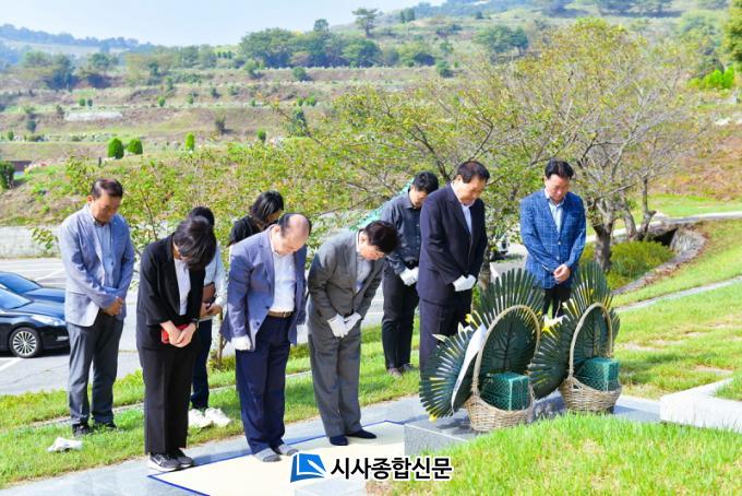À̳¯ Á¤ ½ÃÀåÀº ¿©¼ø»ç°Ç ¿©¼öÀ¯Á·È¸(ȸÀå ¼Àå¼ö) ÀÓ¿øÁø°ú ÇÔ²² ½Ã¸³°ø¿ø¹¦Áö¸¦ ã¾Æ ¾ï¿ïÇÏ°Ô ¸ñ¼ûÀ» ÀÒÀº Èñ»ýÀÚÀÇ ³ÌÀ» ±â¸®¸ç ÇåÈÇÑ ÈÄ Âü¹è¸¦ ¸¶ÃÆ´Ù.