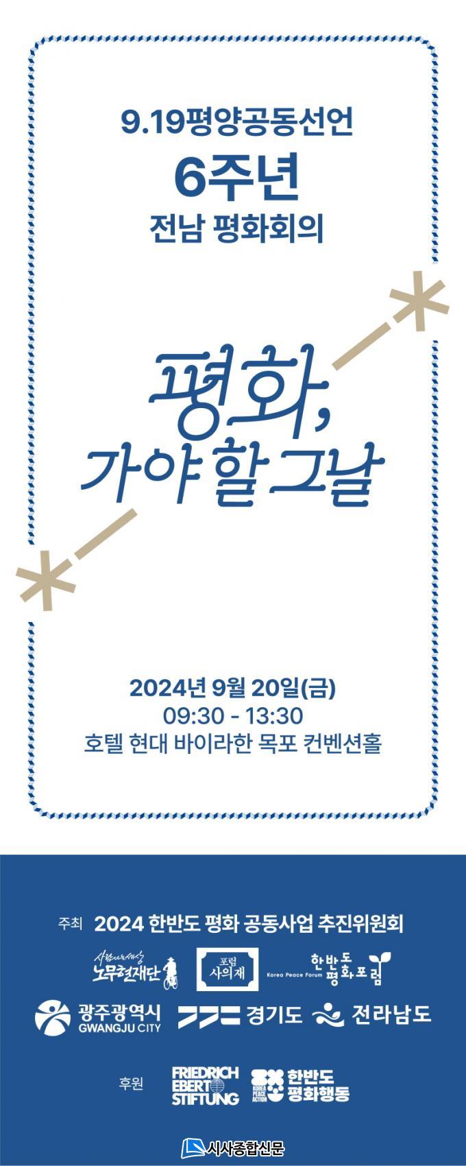 Àü³²µµ´Â À̳¯ ¿ÀÀü 9½Ã 30ºÐºÎÅÍ È£ÅÚÇö´ë ¹ÙÀ̶óÇÑ ¸ñÆ÷ ÄÁº¥¼ÇȦ¿¡¼ ¡®ÆòÈ, °¡¾ß ÇÒ ±×³¯¡¯À» ÁÖÁ¦·Î 9¡¤19Æò¾ç°øµ¿¼±¾ð 6Áֳ⠱â³ä ¡®Àü³² ÆòÈȸÀÇ¡¯¸¦ °³ÃÖÇÑ´Ù.