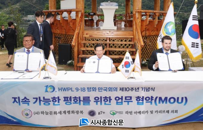 | [»çÁø Á¦°ø = HWPL]18ÀÏ HWPL ÆòÈ¿¬¼ö¿ø¿¡¼ HWPL 9.18 ÆòÈ ¸¸±¹È¸ÀÇ 10Áֳ⠱â³ä½ÄÀÌ ¿¸° °¡¿îµ¥ À̸¸Èñ ´ëÇ¥°¡ G7+, ¶óƾ¾Æ¸Þ¸®Ä«¡¤Ä«¸®ºêÇØÀÇȸ¿Í Áö¼Ó °¡´ÉÇÑ Æòȸ¦ À§ÇÑ ¾÷¹«Çù¾à(MOU)¸¦ ü°áÇϰí ÀÖ´Â ¸ð½À. |