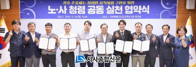 À̳¯ Çù¾à½Ä¿¡´Â ¼°Å¼® ±³À°°¨°ú µµ³» ±³¿ø´Üü¿Í Áö¹æ°ø¹«¿ø ³ëµ¿Á¶ÇÕ Áß ÀüºÏ±³»ç³ëµ¿Á¶ÇÕ(À§¿øÀå Á¤Àç¼®), ÀüºÏƯº°ÀÚÄ¡µµ±³¿ø´ÜüÃÑ¿¬ÇÕȸ(ȸÀå ¿ÀÁØ¿µ), Çѱ¹±³À°³ëµ¿Á¶ÇÕ(À§¿øÀå ¹Úâ¿ë), ÀüºÏÅëÇÕ°ø¹«¿ø³ëµ¿Á¶ÇÕ(À§¿øÀå ±èÀÍö), Çѱ¹°ø¹«¿ø³ëµ¿Á¶ÇÕÀüºÏ±³À°Ã»ÁöºÎ(ÁöºÎÀå ȲÅÂÇÐ) µî Çù¾à ü°áÀ» Èñ¸ÁÇÑ 5°³ ´ÜüÀÇ ´ëÇ¥ÀÚµéÀÌ Âü¼®Çß´Ù.