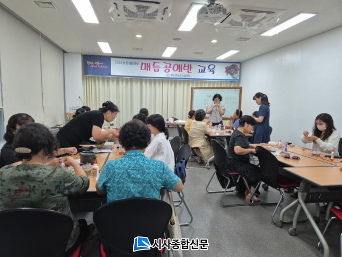 ¸Åµì°ø¿¹ ±³À°Àº Áö³ 8¿ùºÎÅÍ 2°³¿ù°£ ¿î¿µµÇ¾úÀ¸¸ç, Áö¿ª³ó¾÷ÀÎ 20¸íÀÌ Âü¿©ÇÏ¿© ¿Á¤ÀûÀ¸·Î ±³À°¿¡ ÀÓÇß´Ù. ƯÈ÷, À̹ø ±³À°¿¡¼´Â ´Ù¾çÇÑ ¸Åµì ±â¹ýÀ» Ȱ¿ëÇÑ Àå½Å±¸, ¼Òǰ, »ýȰ¿ëǰ Á¦ÀÛ µî ½Ç¿ëÀûÀÌ°í ¾Æ¸§´Ù¿î ÀÛǰµéÀÌ ¿Ï¼ºµÇ¾î Âü¿©ÀÚµéÀÇ Å« È£ÀÀÀ» ¾ò¾ú´Ù.