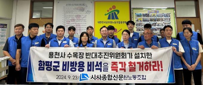 650¿© ÇÔÆò±º°ø¹«¿ø³ëÁ¶ Á¶ÇÕ¿øµéÀº ¼º¸í¼¸¦ ÅëÇØ ¡°¿ëõ»ç¼ö¸ñÀå¹Ý´ëÀ§¿øÈ¸´Â ¿ëõ»çÀÇ ¼ö¸ñÀå Á¶¼º ÃßÁøÀ¸·Î ÀÎÇØ ¸¶À» ¹ßÀüÀÌ ÀúÇØµÈ´Ù´Â ÀÌÀ¯·Î °¢Á¾ Áýȸ ¹× ¼Ò¼ÛÀ» ÅëÇØ ÇÔÆò±º ÇàÁ¤À» ¹æÇØÇϰí ÀÖ´Ù¡±°í ºñÆÇÇß´Ù.