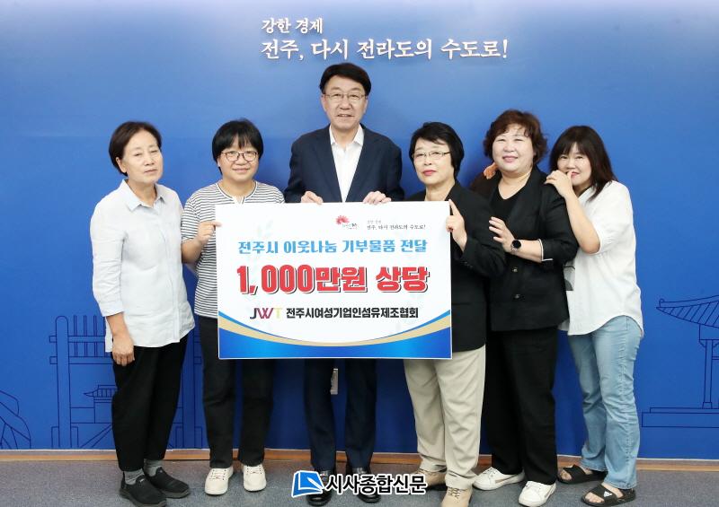 ÀüÁֽÿ©¼º±â¾÷Àμ¶À¯Á¦Á¶Çùȸ(ȸÀå ÇÑÃáÀÚ)´Â 23ÀÏ µµ¿òÀÌ ÇÊ¿äÇÑ ÀÌ¿ôÀ» À§ÇØ »ç¿ëÇØ´Þ¶ó¸ç ÀüÁֽÿ¡ 1000¸¸ ¿ø »ó´çÀÇ ¹°Ç°À» ±âºÎÇß´Ù.