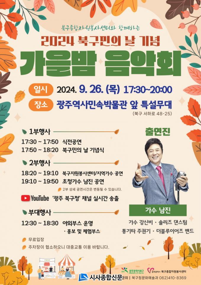 ±¤ÁÖ¿ª»ç¹Î¼Ó¹Ú¹°°ü ±¤Àå ÀÏ¿ø¿¡¼ °³ÃֵǴ À̹ø ±â³äÇà»ç´Â Áö¿ªÁֹΠ1õ¿© ¸íÀÌ Âü¼®ÇÑ °¡¿îµ¥ ¡®½ÄÀü °ø¿¬¡¯À» ºñ·ÔÇØ ¡®±â³ä½Ä¡¯°ú ¡®°¡À»¹ã À½¾Çȸ¡¯°¡ ¿ÀÈÄ 5½Ã 30ºÐºÎÅÍ 7½Ã 50ºÐ±îÁö ÁøÇàµÈ´Ù.