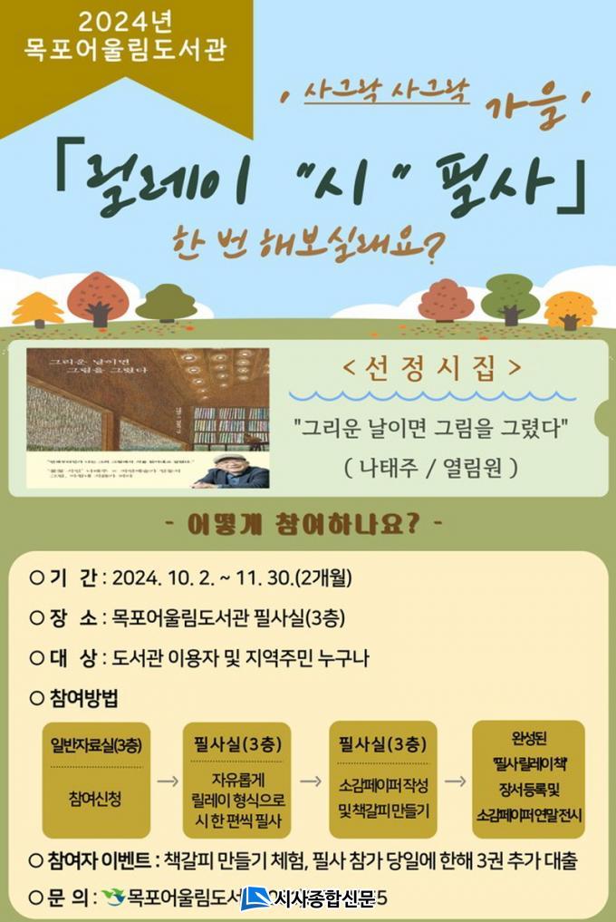 ¸ñÆ÷½Ã °ü°èÀÚ´Â ¡°¸±·¹ÀÌ ½Ã ÇÊ»ç Çà»ç·Î ½Ã¹Î¿¡°Ô Ã¥ ÀбâÀÇ Áñ°Å¿òÀ» ´©¸®°í È޽ġ¤¼ÒÅëÀÌ °¡´ÉÇÑ ½Ã°£À» Á¦°øÇϰíÀÚ ÇÑ´Ù¡±¸ç, ¡°ÀÌ Çà»ç¸¦ ÅëÇØ ¾î¿ï¸²µµ¼°üÀÌ ½Ã¹Î°ú Ã¥À» ¿¬°áÇÒ ¼ö ÀÖ´Â ¸Å°³Ã¼ ¿ªÇÒÀ» ÇÔÀ¸·Î½á µ¶¼¡¤¹®ÈÁøÈï¿¡ ±â¿©ÇÏ°í ½Ã¹Î¿¡°Ô´Â Ã¥ Àб⸦ ÅëÇÑ ÁöÄ£ ¸¶À½À» À§·Î ¹Þ´Â Èú¸µÀÇ ±âȸ°¡ µÇ±æ ¹Ù¶õ´Ù¡±°í ¸»Çß´Ù.