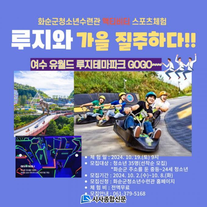 ¸ðÁý´ë»óÀº ȼø±º¿¡ ÁÖ¼Ò¸¦ µÐ ÁßÇлý ~ 24¼¼ û¼Ò³â 35¸íÀ¸·Î ¾ÈÀüÇÑ Ã¼ÇèÀ» À§ÇØ ÀÚÀ¯·Î¿î Ȱµ¿ÀÌ °¡´ÉÇÑ ÁßÇлýºÎÅÍ ¸ðÁýÇϸç, 10¿ù 2ÀÏ(¼ö) ~ 8ÀÏ(È)±îÁö û¼Ò³â¼ö·Ã°ü ȨÆäÀÌÁö(https://hwasunyouth.kr) ¡®ÇÁ·Î±×·¥ ½Åû¡¯ °Ô½ÃÆÇÀ» ÅëÇØ Á¢¼öÇÏ¿© üÇè ´ë»óÀÚ·Î È®Á¤½Ã ¹®ÀÚ·Î ¾È³»µÉ ¿¹Á¤ÀÌ´Ù.