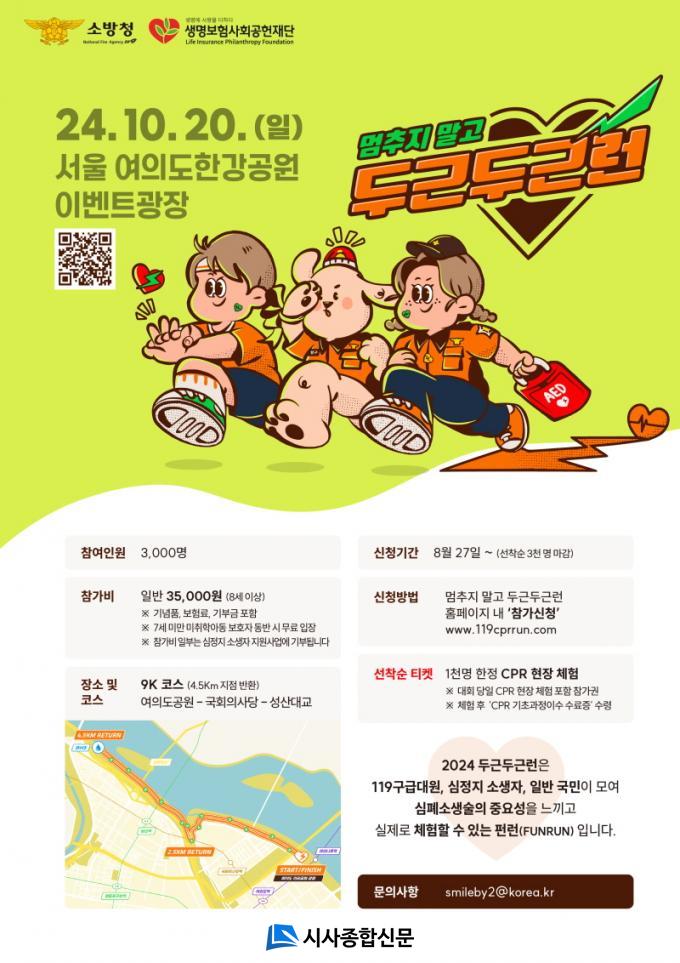 À̹ø ¸¶¶óÅæ ÄÚ½º´Â ¿©Àǵµ°ø¿ø-±¹È¸ÀÇ»ç´ç-¼º»ê´ë±³¸¦ Åë°úÇÏ´Â ÃÑ 9km·Î 1km¸¶´Ù ½ÉÁ¤Áö ȯÀÚ ¹ß°ß ½Ã ÇÊ¿äÇÑ ½ÉÆó¼Ò»ý¼ú ´Ü°è¸¦ ÇнÀÇÒ ¼ö ÀÖ´Â ÆÝ·±(FUN RUN) Çü½ÄÀ¸·Î ÁøÇàµÇ¸ç, Âü°¡¸¦ ¿øÇÏ´Â ±¹¹Î ´©±¸³ª Âü¿© °¡´ÉÇÏ´Ù.